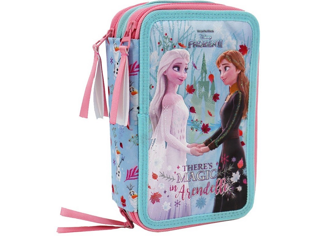 Pouzdro Frozen, 3 patra, naplněné. Snad každý školák potřebuje pouzdro na své psací potřeby. Ideální volbou může být pouzdro Frozen, které je vybavé a pro praktické uložení psacích potřeb má několik pružných gumových poutek. Penál obsahuje základní vybavení jako jsou pastelky, fixy, tužky, gumu, ořezávátko, pravítko 12 cm, rozvrh hodin. Penál má pevný zip s velkým taháčkem pro snadnou manipulaci. Vše co má správný penál mít.Materiál: polyester. Rozměr: 20 x 12,5 x 5,5cmVhodné pro děti od 6 let.