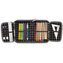Piórnik jednokomorowy z dwoma klapkami z wyposażeniem (długopis, ołówek, 7 pisaków, 9 kredek, gumka, linijka, temperówka, ekierka). Zadrukowane kolorowe wnętrze.