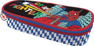 Owalny piórnik szkolny z klapką to niezbędny przedmiot uczniów. Wewnątrz na klapce znajdują się gumowe uchyty na przybory do pisania oraz skrzydło, na którym jest kieszonka z siateczki zamykana zamkiem błyskwicznym i kolejne gumowe uchwyty. Komora główna jest pojemna, korpus dodatkowo usztywniany. Na piórniku znajduje się motyw z serii Spider Man