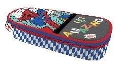 Owalny piórnik szkolny z klapką to niezbędny przedmiot uczniów. Wewnątrz na klapce znajdują się gumowe uchyty na przybory do pisania oraz skrzydło, na którym jest kieszonka z siateczki zamykana zamkiem błyskwicznym i kolejne gumowe uchwyty. Komora główna jest pojemna, korpus dodatkowo usztywniany. Na piórniku znajduje się motyw z serii Spider Man. Duży piórnik z organizerem oprócz najważniejszych przyborów szkolnych, pomieści także m. in. pomadkę ochronną, chusteczki czy mały krem do rąk. Dzięki ruchomej przekładce, można oddzielić produkty kosmetyczne od szkolnych .Wyróżnia się na tle konkurecji tym, że dłuższy.