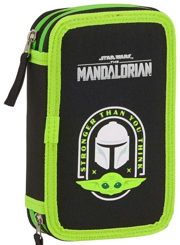 Dvoudílné černé školní pouzdro s motivem The Mandalorian. Pouzdro obsahuje celkem 28 položek.