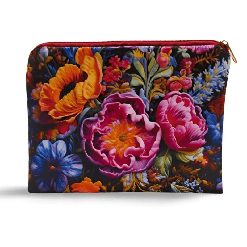 Malá voděodolná taštička s potiskem a zapínáním na zip - Kytky