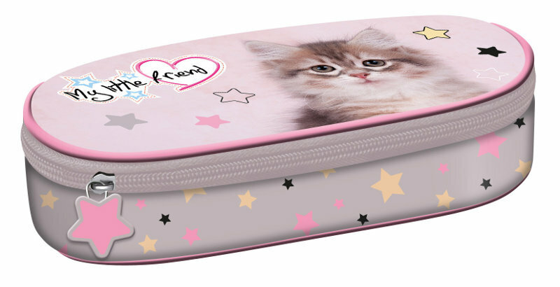 Piórnik saszetka usztywniona z wewnętrzną klapką PC-01 My Little Friend.Cechy produktu:- 1 pojemna komora główna zamykana za pomocą zamka błyskawicznego,- 1 wewnętrzna, ruchoma klapka z miejscem na przybory piśmiennicze,- wewnętrzna kieszeń zapinana na suwak,- dodatkowe dwie przegródki na drobiazgi,- 2 suwaki z uchwytami w kształcie gwiazdki,- cały korpus piórnika usztywniony gąbką,- dla dzieci w wieku przedszkolnym oraz wczesnoszkolnym.Wymiary produktu: 20,5x9,5x5,5cm