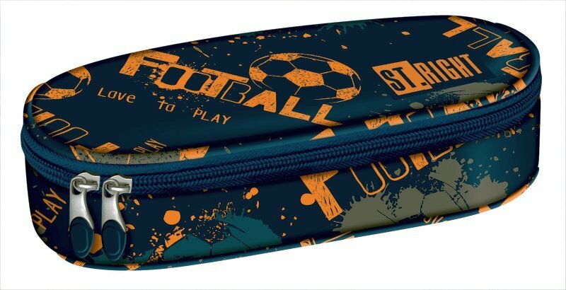 Piórnik saszetka usztywniona z wewnętrzną klapką STRIGHT PC-01 Soccer.Cechy produktu:- 1 pojemna komora główna zamykana za pomocą zamka błyskawicznego,- 1 wewnętrzna, ruchoma klapka z miejscem na przybory piśmiennicze,- mocowania ułatwiające organizację przyborów szkolnych,- wewnętrzna kieszeń z siateczką zapinana na suwak,- 2 suwaki z solidnymi, ergonomicznymi uchwytami,- dla dzieci w wieku przedszkolnym oraz wczesnoszkolnym.Wymiary produktu: 23x11x6cm