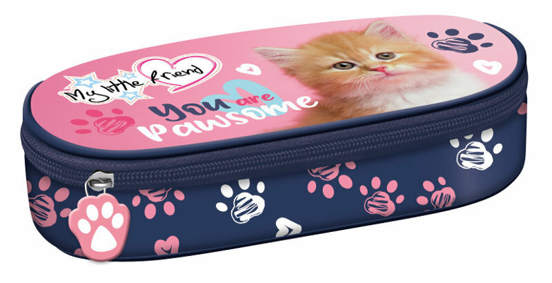 Piórnik saszetka usztywniona z wewnętrzną klapką PC-01 My Little Friend.Cechy produktu:- 1 pojemna komora główna zamykana za pomocą zamka błyskawicznego,- 1 wewnętrzna, ruchoma klapka z miejscem na przybory piśmiennicze,- wewnętrzna kieszeń zapinana na suwak,- dodatkowe dwie przegródki na drobiazgi,- 2 suwaki z uchwytami w kształcie kociej łapki,- cały korpus piórnika usztywniony gąbką,- dla dzieci w wieku przedszkolnym oraz wczesnoszkolnym.Wymiary produktu: 20,5x9,5x5,5cm