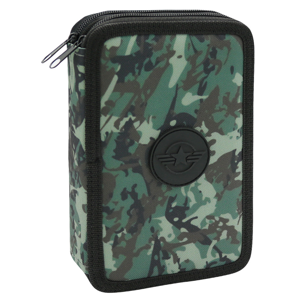 Tento dvouposchoďový školní penál nabízí dostatek místa pro uložení veškerých psacích potřeb a doplňků díky svým dvěma zipům a praktickému uspořádání. Pevné, prošívané desky zajišťují dlouhou životnost, takže se nemusíte bát každodenního nošení v aktovce. Díky gumové nášivce s logem Army navíc vypadá stylově a originálně.