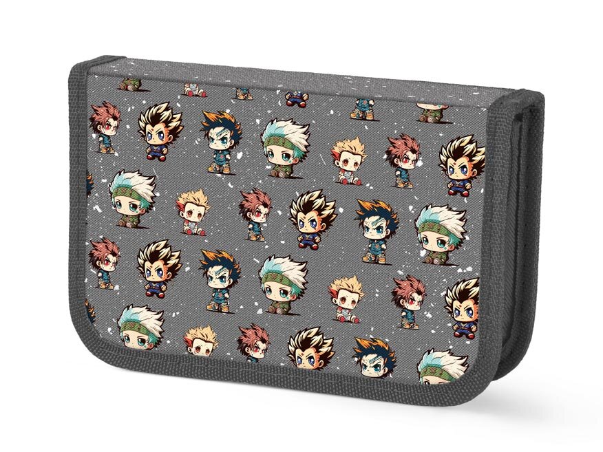 Tento jednopatrový penál se dvěma chlopněmi v moderní tmavě šedé barvě s motivy anime maskotů nabízí dostatek prostoru pro vaše pastelky, tužky a další školní potřeby. Praktické průhledné kapsičky na rozvrh vám umožní mít časový plán stále na očích a ulehčí organizaci dne. Penál je navíc nevybavený, takže si snadno přizpůsobíte obsah dle vlastních potřeb.