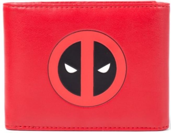 Červená otevírací peněženka s logem komiksového hrdiny Deadpoola.