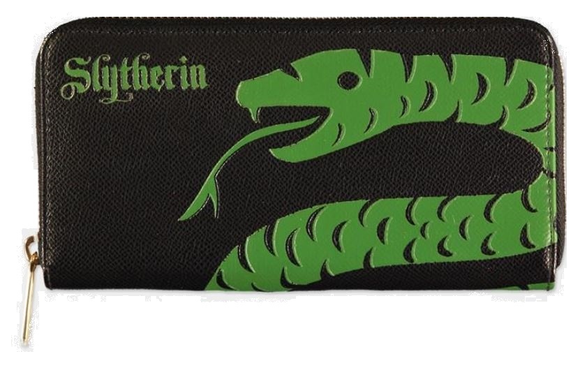 Atraktivní černá dámská peněženka inspirovaná školní kolejí Zmijozel a jejich erbovním zvířetem.