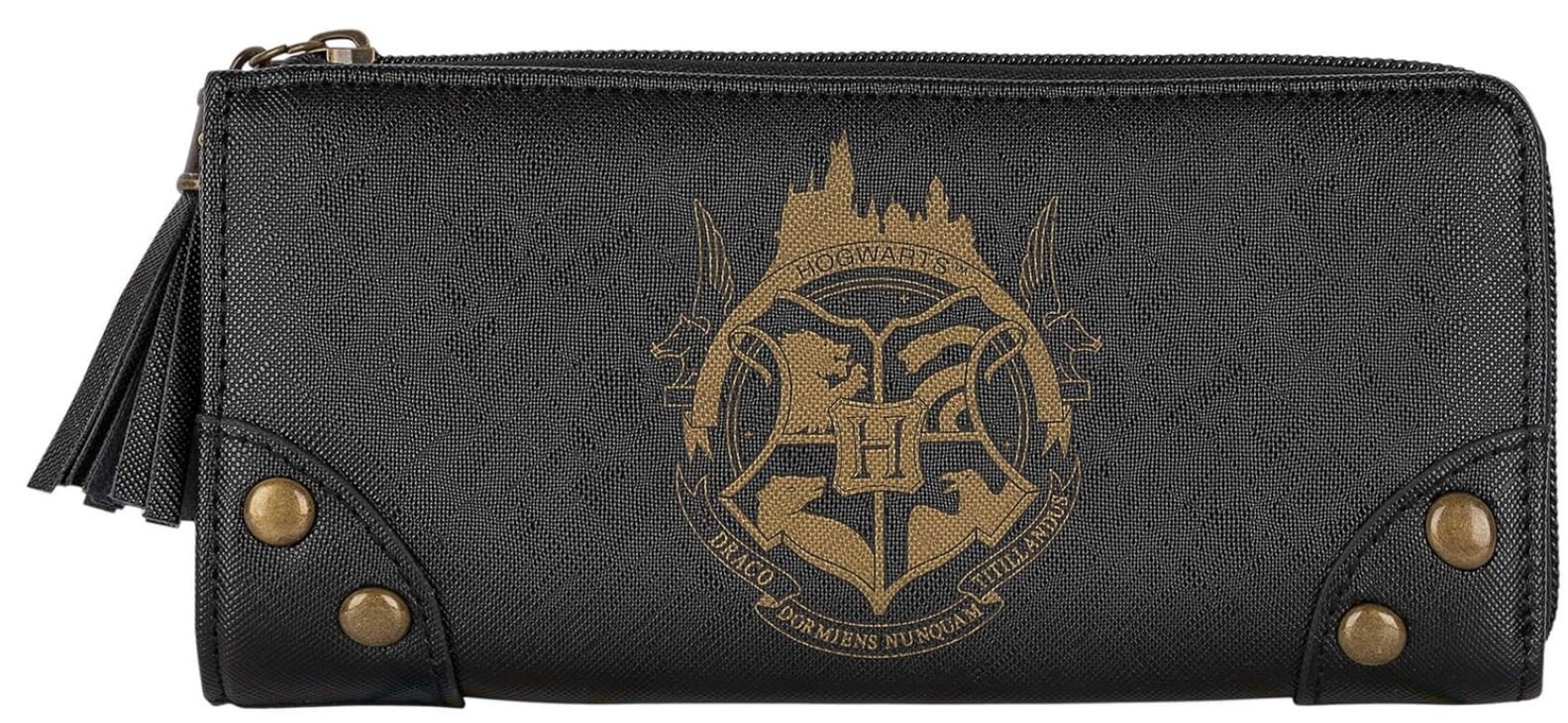 Atraktivní černá dámská peněženka s grafikou erbu Školy čar a kouzel v Bradavicích. Peněženka je vhodná pro všechny fanoušky Harryho Pottera.