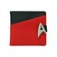Tato Krásná černočervená peněženka v barvách velitelské divize USS Enterprise-NCC 1701 ze Star Treku bude dobrým společníkem všem fanouškům a Trekkies. Peněženka poskytuje dostatek prostoru pro bankovky, platební a ID karty, vstupenky či jízdenky. Má kovové zavírání v podobě odznaku Hvězdné flotily, součástí je také kapsa na drobné mince. Materiál: polyuretan