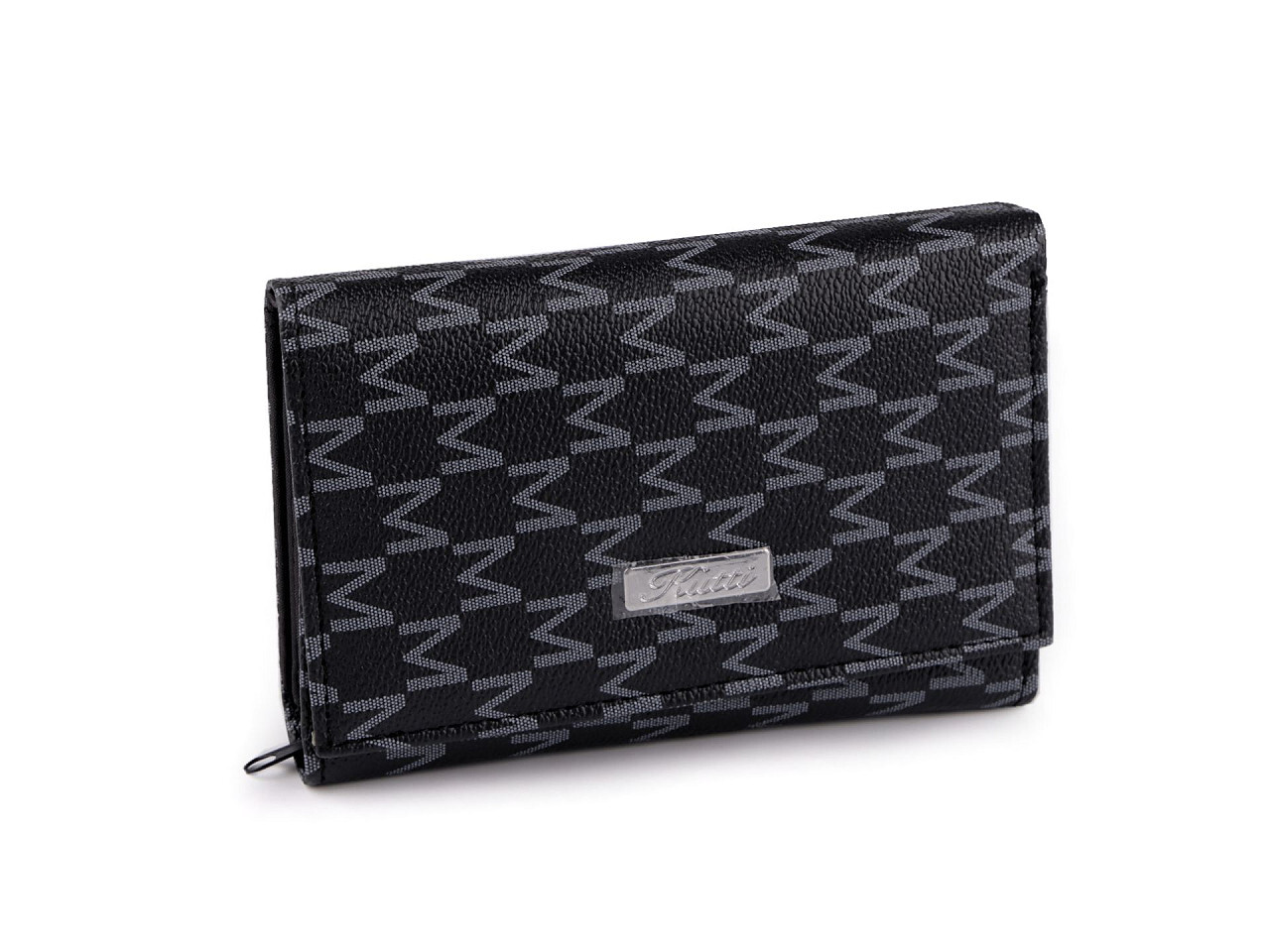Zavírá se na klopu a patent. Uvnitř jsou 2 oddělené prostory. Po pravé straně jsou 4 přihrádky na karty, z toho je 1 průhledná. Pod nimi je 1 velká plochá kapsa. Uprostřed peněženky se nachází 2 kapsy na bankovky, v jedné je malá kapsička na zip. Vlevo je mincovník, který se zapíná na zip. Peněženka ukrývá ještě druhý oddíl, který se objeví po odepnutí zápinky na levé straně. Zde se nachází 6 přihrádek na kreditní karty a 5 plochých kapes.