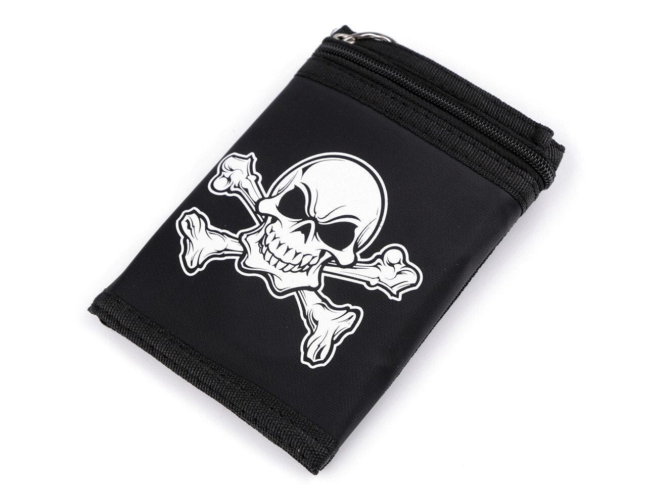 Textilní peněženka s řetízkem - 1 ks - 2 černá lebka