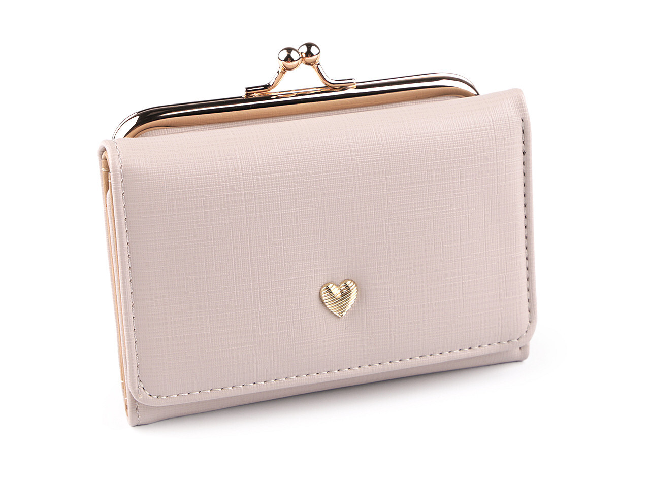 Malá elegantní peněženka potěší ženy všech věkových generací. Na přední klopě je ozdobená kovovým 3D srdíčkem.