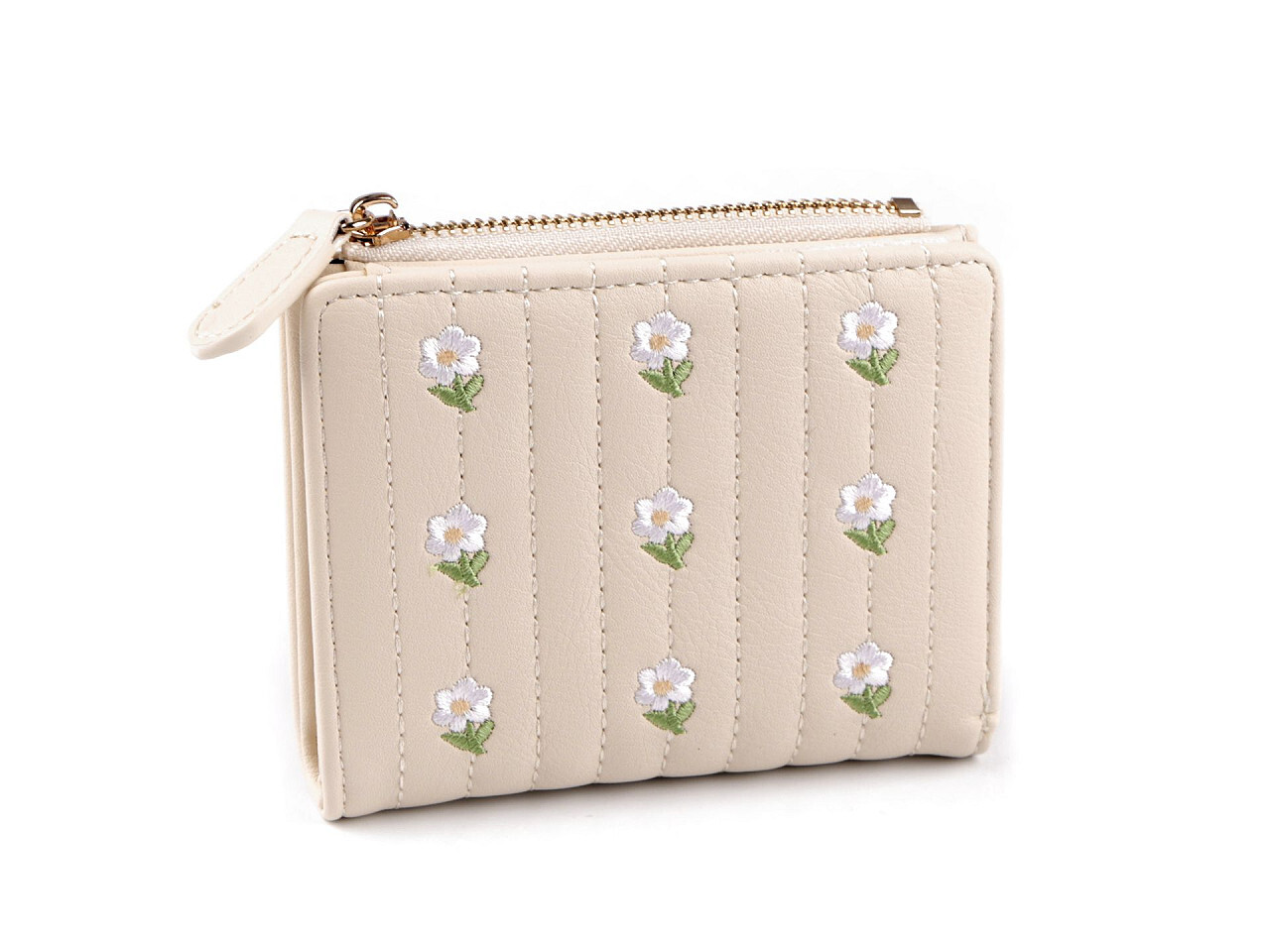 Dámská peněženka vyšívaná 9x12 cm - 1 ks - 1 krémová světlá