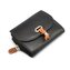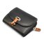 Dámská kožená peněženka v černé barvě se uzavírá klopou s pevným drukem a ozdobným proužkem hnědé kůže. Po otevření kožené peněženky jsou hned přístupné všechny kapsy na karty a bankovky. Mincovník peněženky se uzavírá zipem, je rozdělený na tři kapsičky, jedna z nich má další zip. Mincovník je přístupný bez nutnosti otevřít peněženku. Dámská kožená peněženka je vyrobená z velmi jemné, pravé nappa kůže a je z kolekce značky Dariya bags.