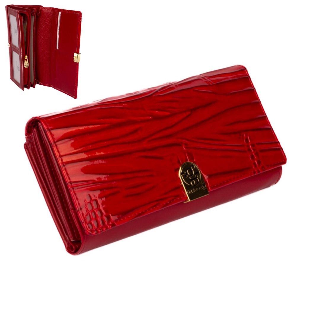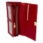 Kožená peněženka dámská s klopou je rozdělená na dvě poloviny. Jedna polovina se uzavírá klopou s pevným drukem. Po jejím otevření je přístupných několik kapes na platební a jiné karty. Dvě jsou průhledné a můžete je použít třeba na fotografie vašich blízkých. Vedle jsou dvě kapsy na bankovky, další jedna tenká. Všechny české bankovky není nutné přeložit před vložením. Vedle je kapsa na mince přes celou peněženku, uzavíratelná na zip s velkým jezdcem pro pohodlné otevírání. Uvnitř jsou dvě velké kapsy na mince. Uplatnění najdete určitě i pro pár tenkých kapes, třeba na nějaké tajné papírky. Druhá polovina peněženky se uzavírá přezkou se dvěma druky. Po jejím otevření se přístupné další kapsy na karty, jedna je průhledná a jedna tenká kapsa přes celou peněženku. Peněženka je vyrobená z pravé kůže, má červenou barvu a je dodávána v dárkové krabičce. Peněženka je vybavena RFID ochranou proti nechtěnému čtení karet.