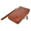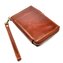 Hnědá peněženka kožená dámská se uzavírá zipem s velkým jezdcem pro pohodlné otevírání. Otevřením kožené peněženky se dostanete ke všem kapsám uvnitř peněženky. V dámské peněžence je také kapsa například na mobilní telefon (rozměr kapsy je cca 13x7cm). Na zadní straně peněženky je kapsa na zip. Peněženka má odnímatelné poutko pro pohodlné nošení bez kabelky. Hnědá peněženka kožená dámská je vyrobena z tmavě hnědé kůže s je značky Rovicky.