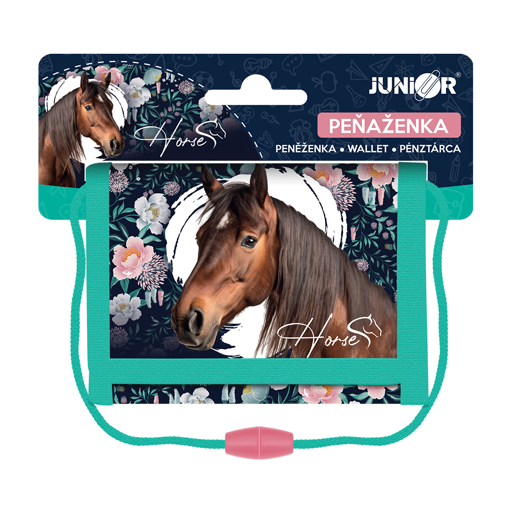 Tato peněženka je ideálním doplňkem pro každého školáka nebo mladého sportovce, který ocení praktické a přehledné uspořádání a motiv koně, jenž potěší všechny milovníky zvířat.