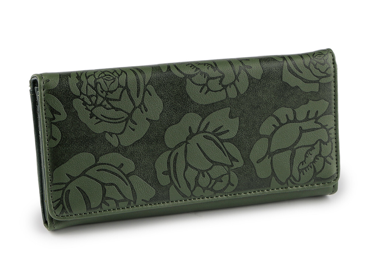 Dámská peněženka s květy 9x18,5 cm - 1 ks - 3 zelená tmavá