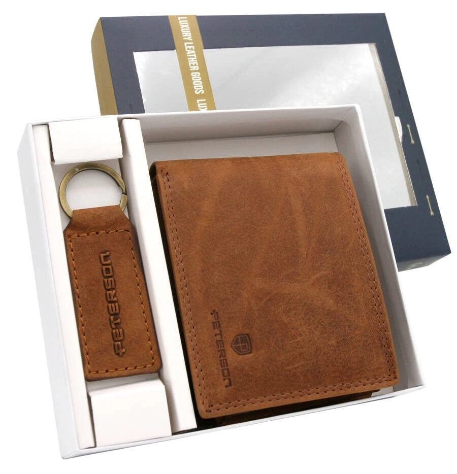Sada dárková pro pány s peněženkou nabízí pánskou peněženku a klíčenku značky Peterson, v hnědé barvě. Peněženka i klíčenka jsou vyrobené z pravé kůže. Sada představuje tradiční pánský doplněk.