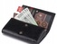 Dámská kožená peněženka se uzavírá klopou s pevným drukem. Pod klopou najdete dostatek kapes na platební karty, velké kapsy na bankovky a menší kapsu na zip. Velký mincovník má rámové uzavírání a je přístupný bez nutnosti otevřít peněženku. Peněženka je i pásek jsou vyrobeny z pravé kůže černé barvy.