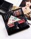 Dámská kožená peněženka se uzavírá klopou s pevným drukem. Pod klopou najdete dostatek kapes na platební karty, velké kapsy na bankovky a menší kapsu na zip. Velký mincovník má rámové uzavírání a je přístupný bez nutnosti otevřít peněženku. Peněženka je i pásek jsou vyrobeny z pravé kůže černé barvy.
