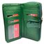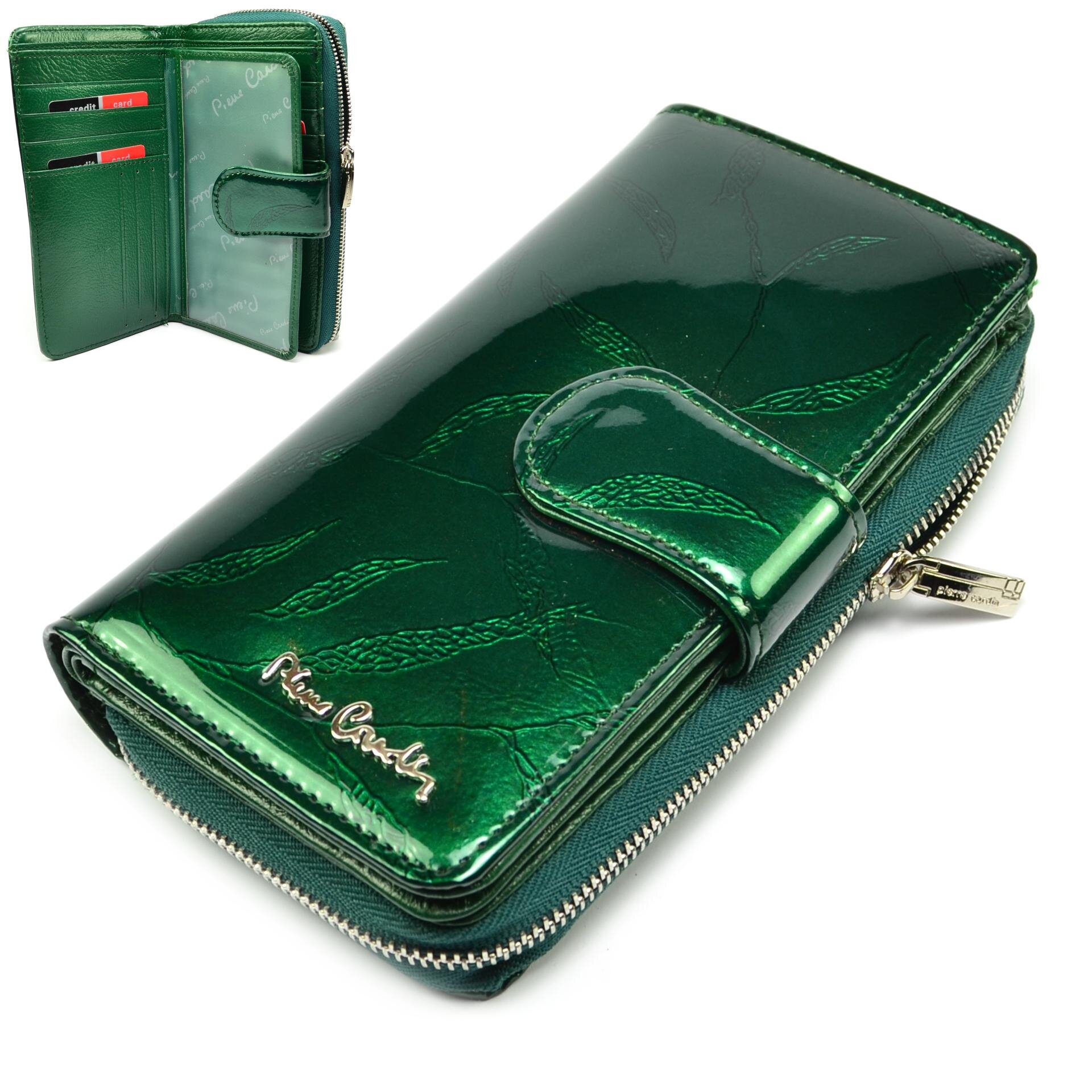 Velká dámská peněženka módní je vyrobena z pravé kůže zelené barvy. Peněženka má zavírání řešenou přezkou se dvěma pevnými druky a zapínáním na zip. Po otevření dámské peněženky pod přezkou jsou přístupné všechny kapsy na karty i bankovky. Dámská peněženka módní má také samozřejmě mincovník uzavíratelný na zip, přístupný bez nutnosti otevřít peněženku. Peněženka je vyrobena z pravé kůže a je značky Pierre Cardin.