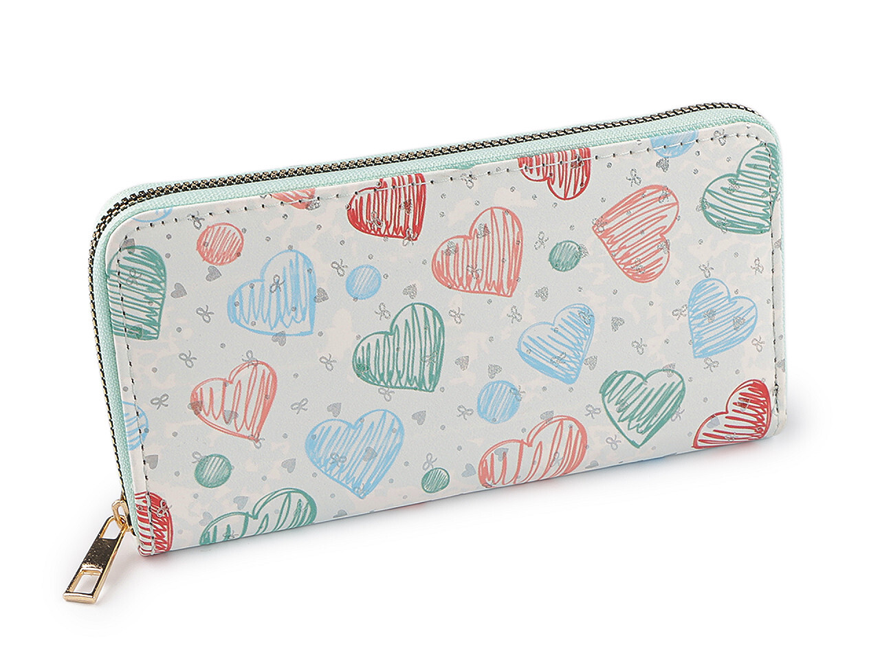 Dámská / dívčí peněženka srdce 10x19 cm - 1 ks - 4 mentolová