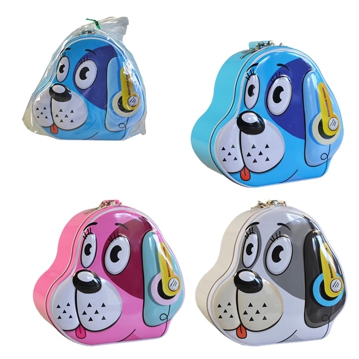 Pokladnička pejsekHračka je určena pro děti 3+.Rozměr hračky je 14x15x7,5cm.Materiál hračky je kov.Balení hračky je sáček.Cena za 1 kus. Možnosť výběru z 3 barev.