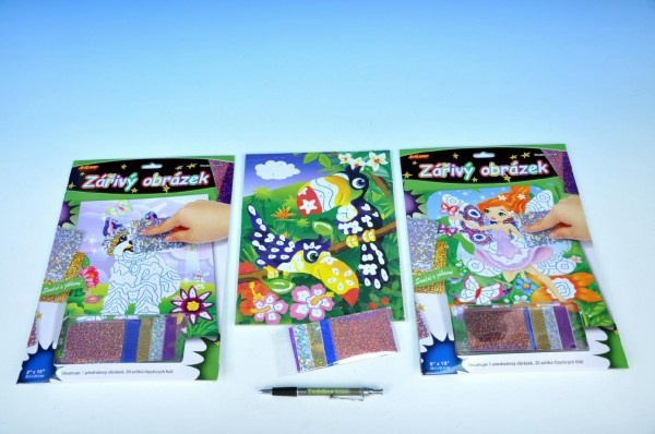Zářivý obrázek mozaika 3D se samolepkami a kamínky 23x32cm, 3 druhy - 1 kus