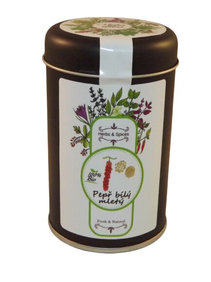 BIO bílý pepř mletý je vyroben z plodů černého pepře, které jsou po sklizni namočeny ve vodě, aby se odstranila červená slupka. Tím se plody zbaví hořkosti a získají svou jemnou, sladkou chuť. Následně je bílý pepř rozemletý na prášek.