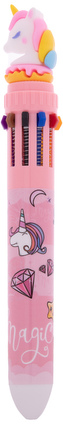 Wielokolory długopis automatyczny:• 10 kolorów w 1• atrakcyjna gumowa figurka służąca jako przycisk mechanizmu wkładów• grubość końcówki: 0,7 mm