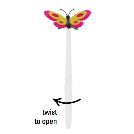 Propiska s motýlemUž se nemusíte bát, že nenajdete svoji propisku, když si ji vaše nenechavá kolegyne pujčí :D Měnitelná náplň, zakoupíte ve vašem papírnictvíplast7 x 5 x 17 cmVIGAR