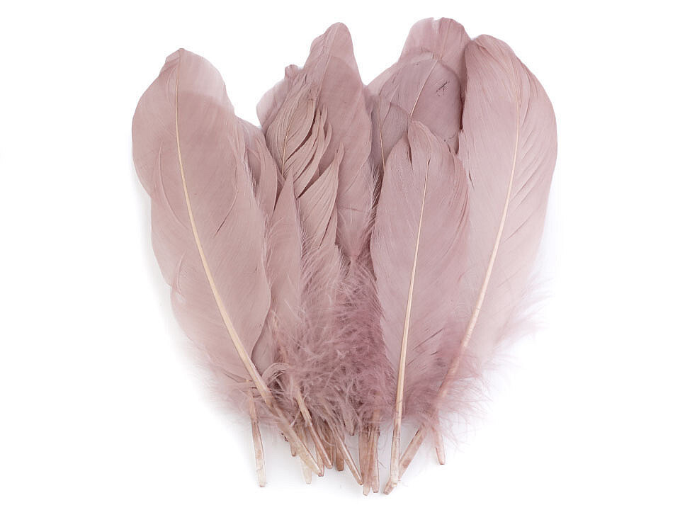 Husí peří délka 12-21 cm - 20 ks - 27 starorůžová
