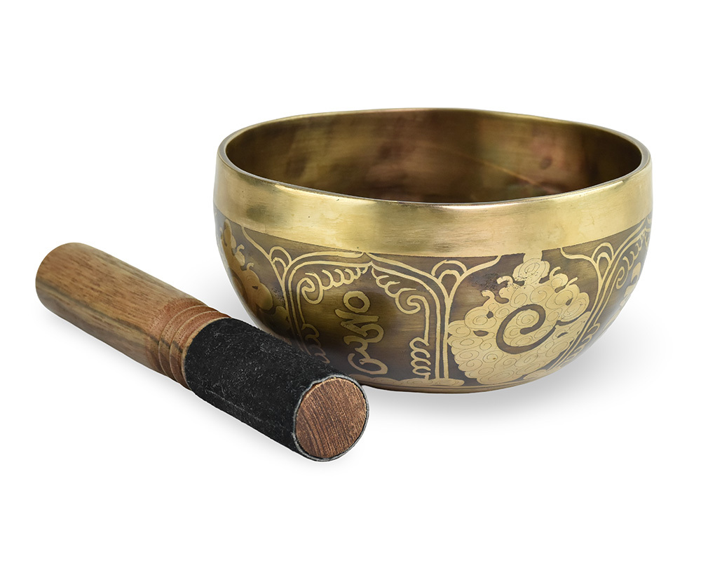 Zdobená zpívající mísa s jednoduchou dřevěnou paličkou. Když člověk poprvé uslyší zvuk tibetské mísy, vždy ho to nějakým zvláštním způsobem osloví. Tibetské zpívající mísy mají na člověka nezanedbatelné a zcela zřejmé účinky. Díky křišťálově čistému nenapodobitelnému zvuku obnovují harmonickou frekvenci těla. Je to díky ultrazvukovému vlnění, které vzniká při hře na tento jednoduchý, ale přitom majestátní nástroj.