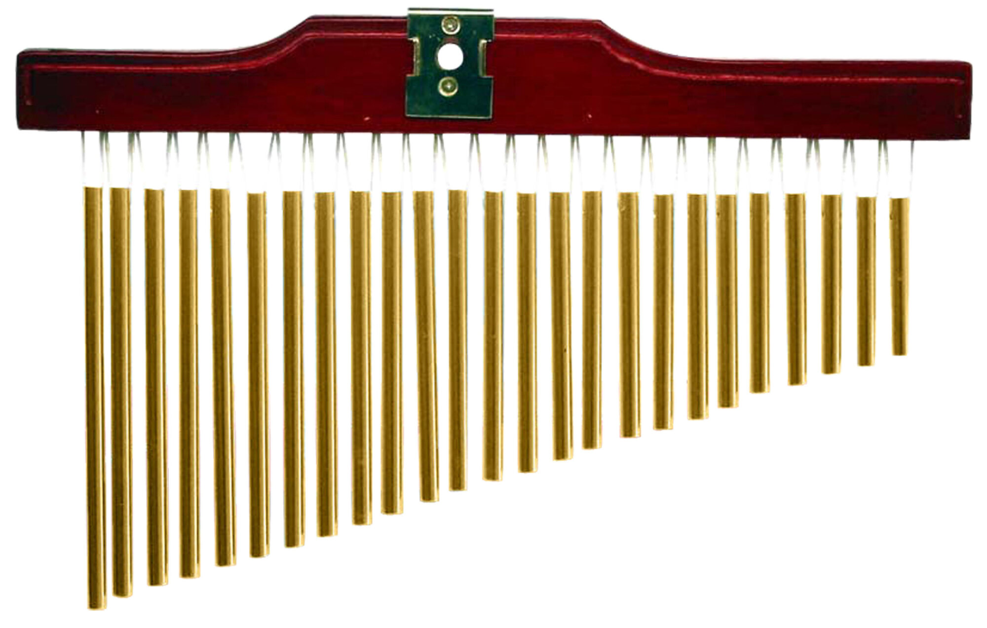 Chimes, 25 zvonků v jedné řadě, borovicová základna. Dodáváno s paličkou.Materiál: eloxovaná hliníková slitina (zvonkohra) a borovice (rám)Řad: 1Zvonků: 25Barva: Zlatá (zvonkohra) a hnědá (rám)V balení: palička číst celé