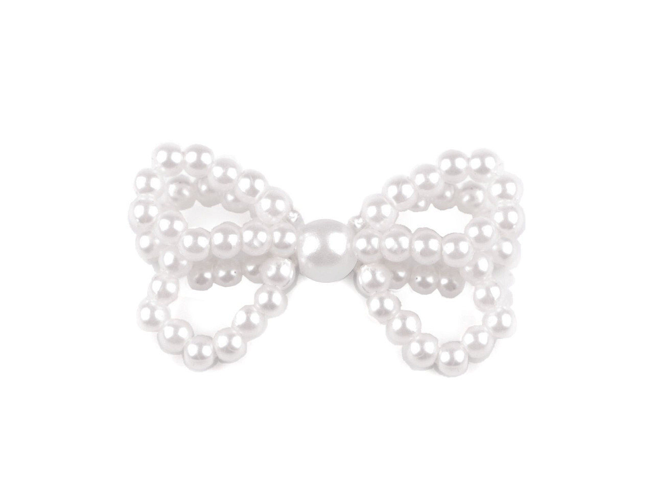 Mašlička z perlových korálků ke zdobení oděvů a doplňků - 5 ks - bílá