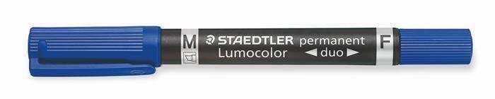 Permanentní popisovač "Lumocolor 348 Duo", modrá, kuželový hrot, F/M, oboustranný, STAEDTLER