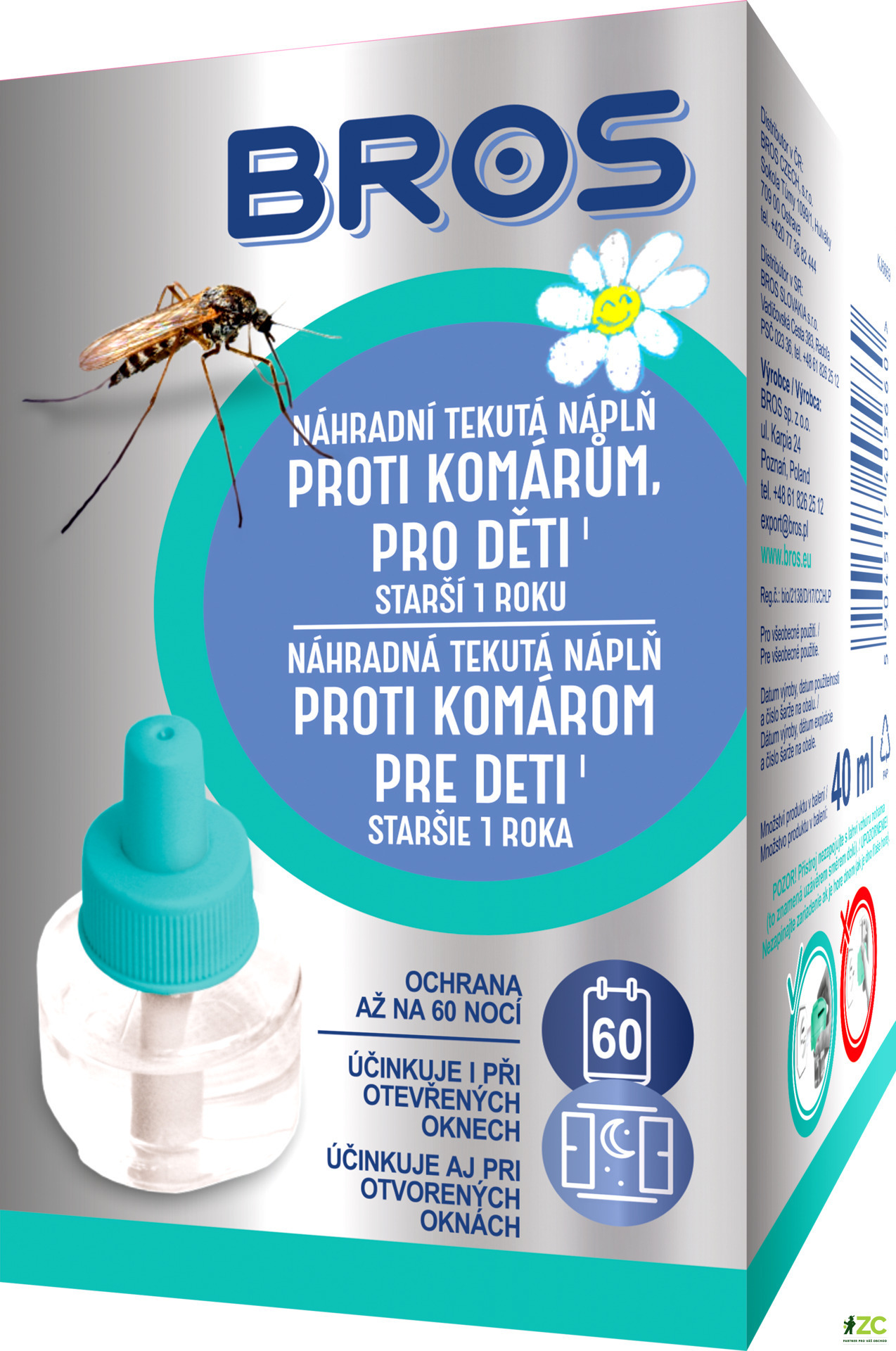 BROS náplň do elektrického strojku proti komárům je ideální volbou pro rodiče, kteří chtějí bezpečně ochránit své děti před nepříjemným bodnutím komárů během letních večerů i dovolených.