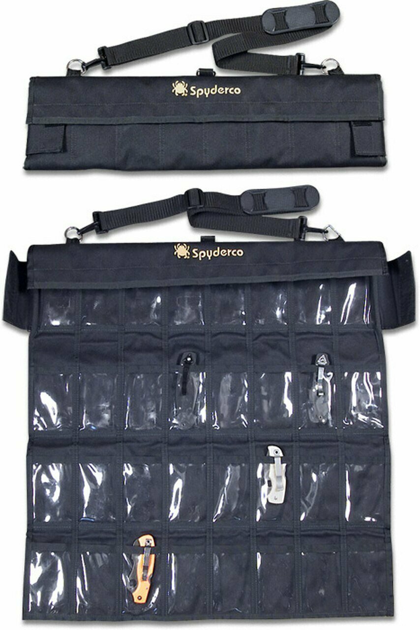 Hľadáte spôsob, ako uložiť a prepravovať viac nožov alebo celú svoju zbierku? SP1 SpyderPac poskytuje bezpečné uloženie a prenosnosť až pre tridsať skladacích nožov. Každé vrecko je 114 mm x 63,5 mm. Vyrobené z ťažkého denierového polyeste Cordura. Každé vrecko je čelné s priehľadným plastovým oknom. Trikrát sa prekrýva a uzatvára sa pomocou suchého zipsu, ktorý prechádza šírkou balenia. Nože zostávajú v bezpečí a sú oddelené vo vreckách a nemôžu sa o seba trieť alebo poškriabať. Ramenný remienok s nastaviteľnou dĺžkou sa pripája pomocou dvoch odolných oceľových D-krúžkov, ktoré vám umožnia zavesiť obal na stenu alebo ho zavesiť cez rameno, aby ste si ho vzali so sebou. Meno Spyderco a logo sú vyšívané zlatou niťou na zatváracej klapke. K dispozícii v čiernej farbe.