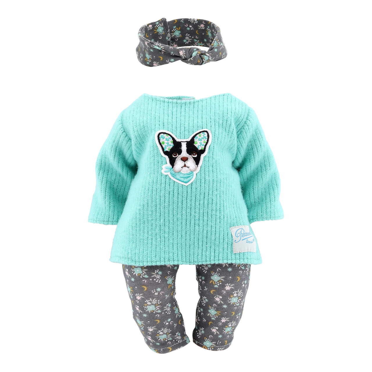 Obleček určený zejména pro panenky Petitcollin řady Petit Câlin. Skládá se ze vzorovaných tepláčků, tyrkysového svetříku s motivem pejska a vzorované čelenky. Oblečky Petitcollin jsou pečlivě zpracované, vynikají francouzskou elegancí, jedinečnou barevností a vzory, díky kterým jsou poutavé a nezaměnitelné. Dodáváno v papírové krabičce s průhledem a plastovým ramínkem. Hlavní vlastnosti:pro panenky o výšce 36 cmtepláčky, svetřík a čelenkavyrobeno v Tunisku