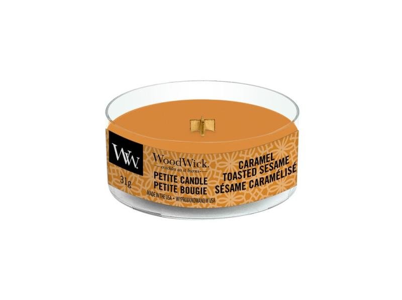 Doba hoření: 6-8 hod. Opečený karamelový sezam Vůně pečeného sezamu, pekanů a karamelek s kapkou burbonu a vanilky. Charakter vůně: Sladké a kořeněné Hlava: pečený sezam, pekan, javorový sirup Srdce: karamel, karamelky, cereální akord Základ: vanilkový krém, bourbon, kakao Skvělé testovací a cestovní balení a také způsob, jak dodat interiéru intimní atmosféru. Malé svíčky jsou nejlepším způsobem, jak vyzkoušet vůně WoodWick® a zažít praskající knot, vyrobený z přírodního dřeva. Jsou nenahraditelné k otestování vůní, které vás zajímají, a také je můžete vzít na cesty, aby vás oblíbená vůně doprovázela všude a cítili jste se jako doma. Protože doma je tam, kde praská oheň. Svíček můžete zapálit víc - i v různých vůních - a díky hořícím plamínkům si vychutnat unikátní zážitek. Vůně svíčky a patentovaný praskající knot Pluswick® Innovation vytvoří útulnou atmosféru kdekoli a hned. Složení: směs prémiového parafínu a sójového vosku s vysoce koncentrovanými vůněmi zajišťuje čisté hoření bez nepříjemných zbytků. Vonné esence byly pečlivě vybrané, aby naplnily místnost dlouhotrvající vůní. Plnobarevná etiketa a víčko pro snadnější skladování. Rozměry 2,85 x 6,3 cm. Doba hoření 6-8 hod. Hmotnost netto 31 g Barva žlutá Typ produktu Vonná svíčka Šířka 6.4 cm Výška 2.9 cm