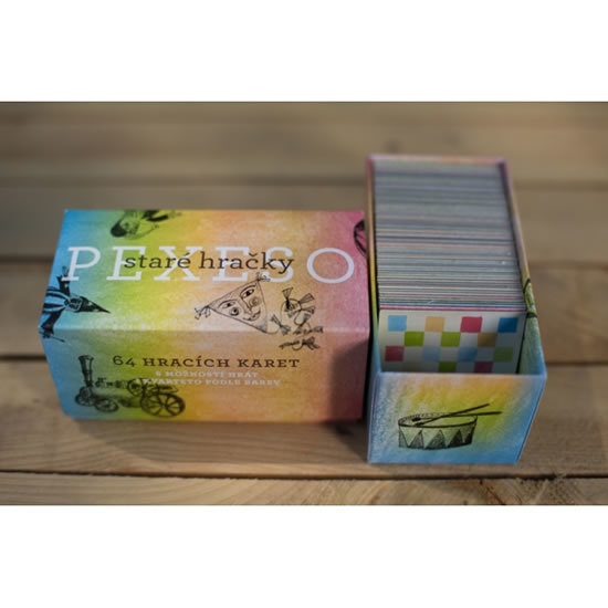 Pexeso Staré hračky má 64 pevných karet v úhledné krabičce. Je to hra doslova pro celou rodinu. Jistě ji také ocení jako užitečnou pedagogickou pomůcku i školní družiny a školky. Netradičně je však zamýšlená i pro domovy a kluby seniorů - kartičky se dobře berou do ruky díky pevnému materiálu, ze kterého jsou karty vyrobeny a jak klasický způsob kresby, tak i to, co na kartičkách je zobrazeno, je nejstarší generaci důvěrně známé. Babičky a dědečkové tak můžou svým vnukům a vnučkám při hře vyprávět s čím si hráli oni, když byli dětmi.