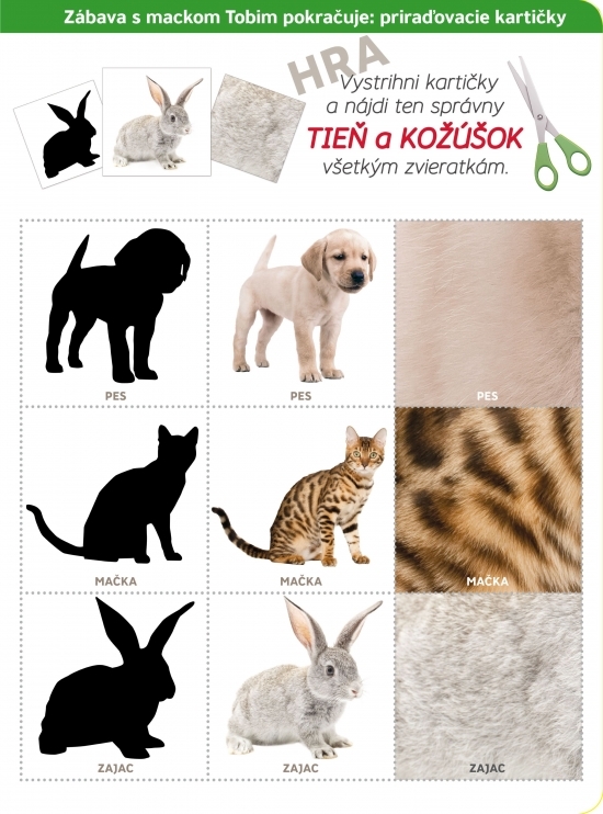 Hra ku knihe Deň s kamarátmi na farme obsahuje všetky zvieratká z farmy, ich tieň a výrez srsti alebo peria. Kartičky treba najprv vystrihnúť a potom deti môžu priraďovať k sebe trojice, alebo si zahrať obdobu pexesa. číst celé