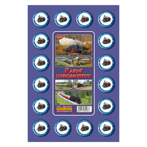 - Obsahuje sady karet s pármi obrázků parních lokomotiv.