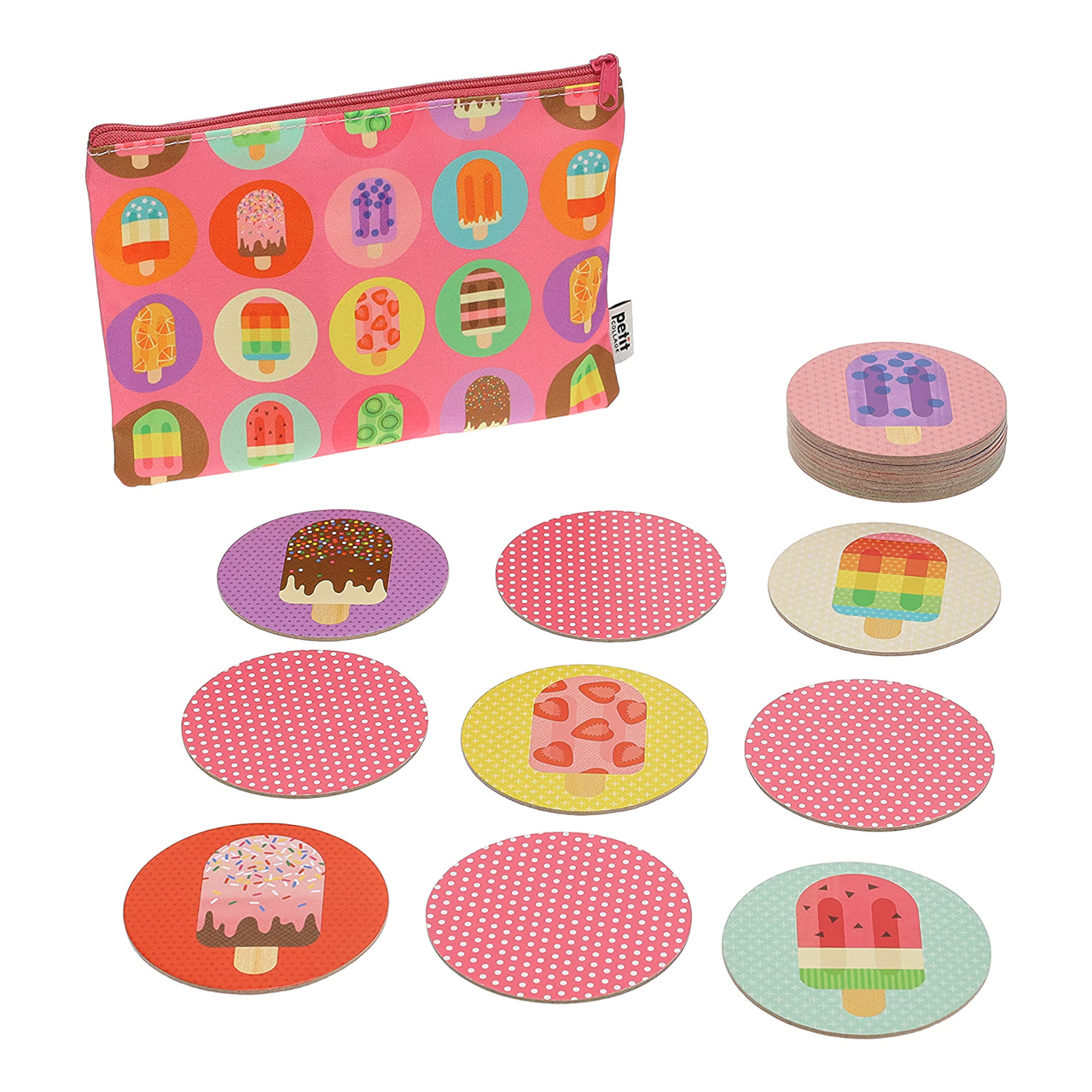 Krásné barevné pexeso pro předškolní děti, párujte nanuky. Hrou dítě rozvíjí rozpoznávání barev a paměť. Pestrobarevné ikony nanuků jsou vyvedeny na kartičkách z recyklovaného papíru a baleny ve zdobené a praktické taštičce s uzavíráním na zip, vyrobené z odolného recyklovaného polyesteru. Hlavní vlastnosti: pro 2 hráče12 párů kartičekpraktické balení