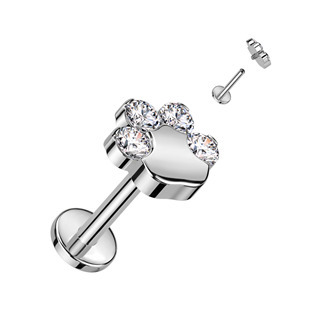 Šroubovací piercing do brady - labreta s motivem psí tlapka