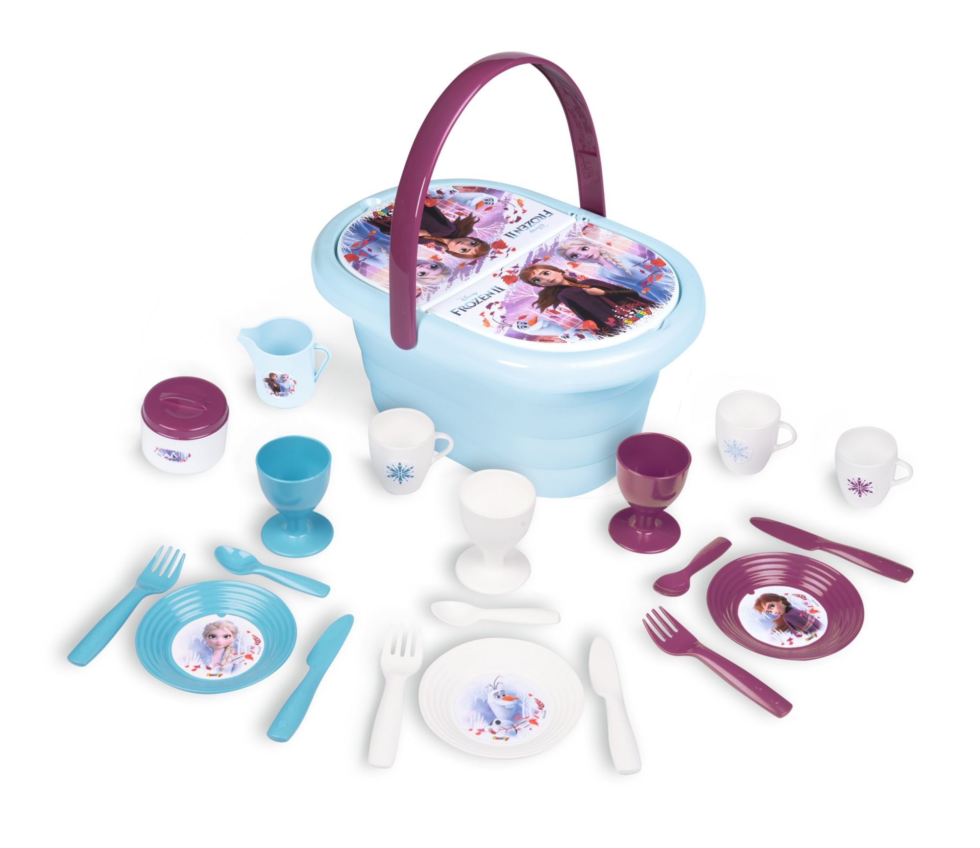 Košík s oblíbenými postavičkami z filmu Ledové království 2 je perfektní na malý piknik. Košík má dvě víka, pevné madlo a obsahuje šálky, hrníčky, pohárky, talířky, příbory, konvičku na mléko a cukřenku. Rozměry: 26,4 x 18,8 x 12,7 cm.