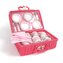 Čajový set je perfektně vybavený pro autentickou hru - obsahuje čtyři porcelánové talířky, hrníčky, lžičky, nádobu na mléko, čajovou konvici, cukřenku, textilní ubrousky a malou dekku. Vše je prakticky uskladněno v uzamykatelném pleteném košíku s madlem, takže si mohou děti hrát doma i na cestách.